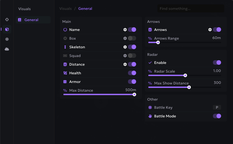 Visuals - это функция, которая отображает противника, дистанцию до него, а также его здоровье.