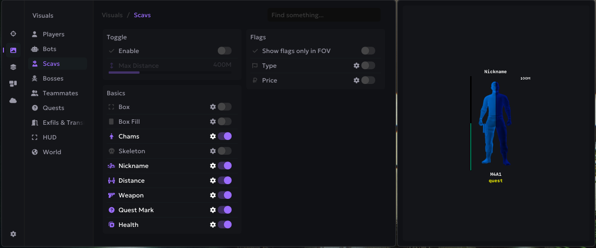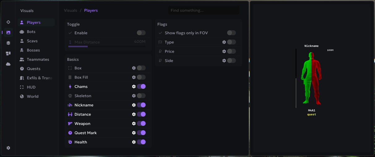Visuals - это функция, которая отображает противника, дистанцию до него, а также его здоровье.