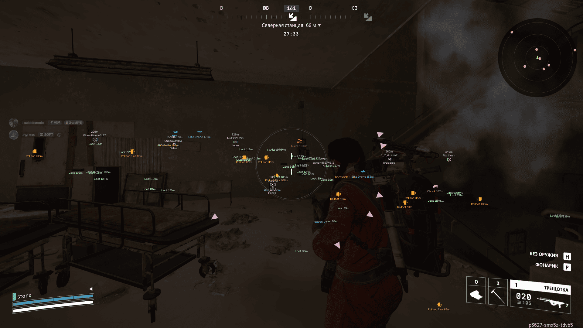 Enemy ESP / ESP врагов: Включить врагов, Дальность врагов (200), Дроны, Rollbots, Турели, Ticks, Snitches, Spotters, BullCrabs, Другие враги