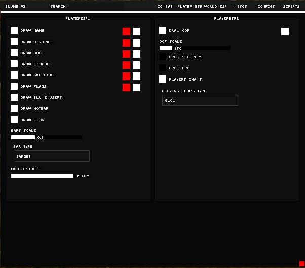 Blume — приватный качественный чит, разрабатываемый специально для клиента Alkad (пиратская версия Rust). В нем есть все необходимые функции для комфортной и продуктивной игры.