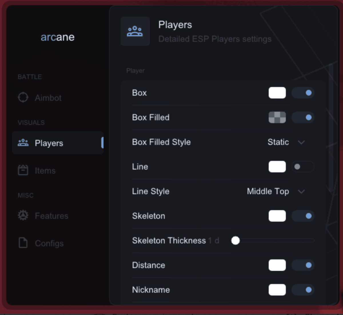 Приватный чит Arcane для игры Unturned - это незаменимый инструмент для всех игроков, которые стремятся к абсолютному превосходству в мире выживания. С великолепными функциями и защитой от обнаружения. Благодаря его уникальным возможностям вы сможете легко пробираться сквозь опасности, обходить врагов и успешно выживать в любых условиях. Доверьтесь читу Arcane и станьте непобедимым лидером в мире Unturned!