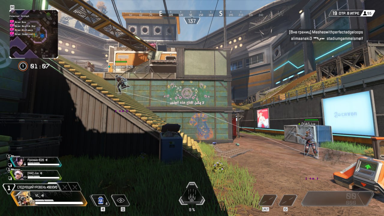 CourierScript — приватный качественный чит, который разрабатывается для Apex. В нем есть все необходимые функции для комфортной и продуктивной игры.