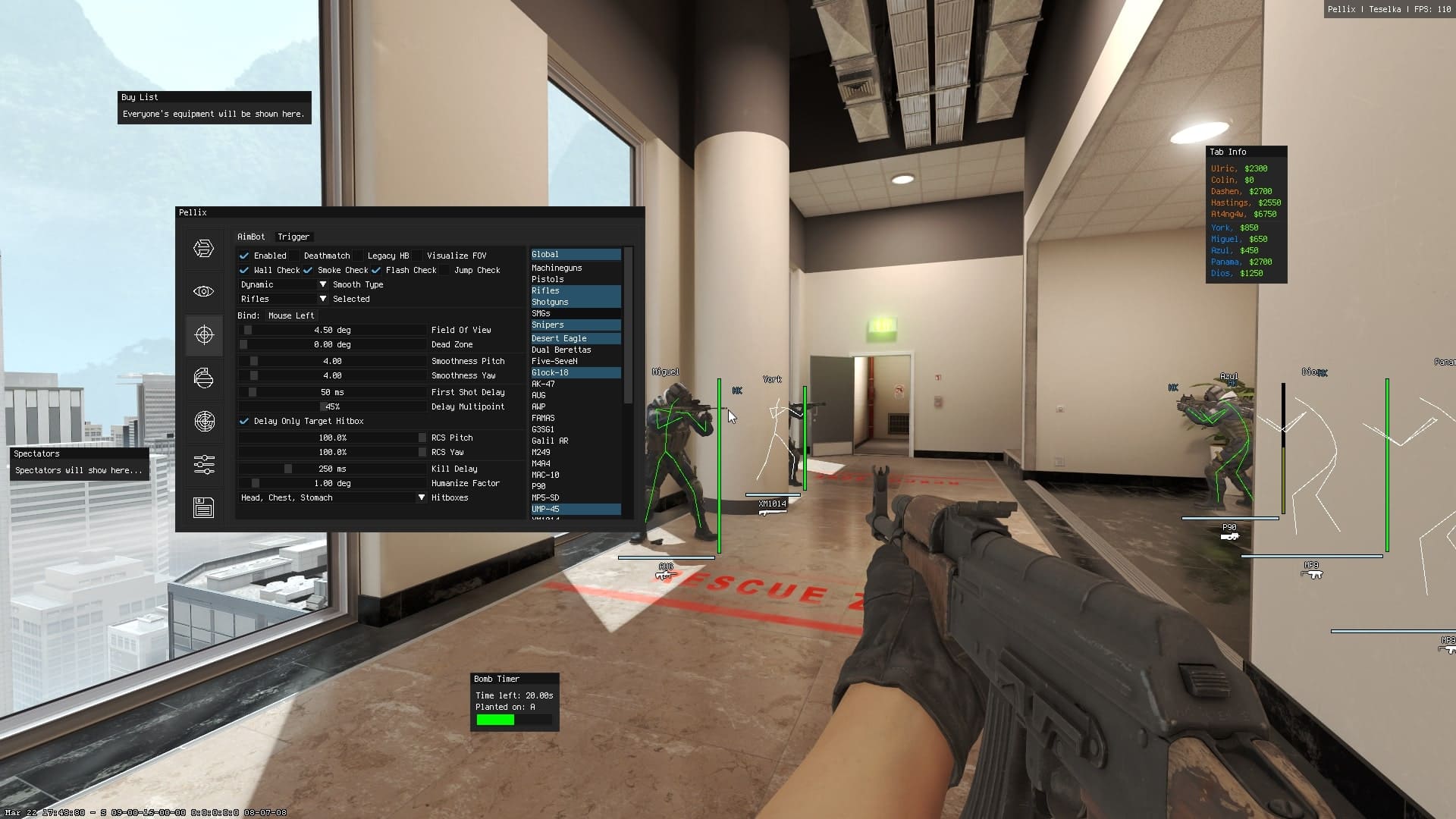 • Аимбот и Триггер Бот: Комбинируйте прицеливание на определённые части тела с плавным движением и настройками задержки для активации стрельбы.