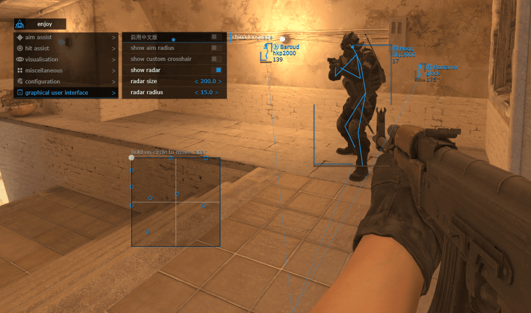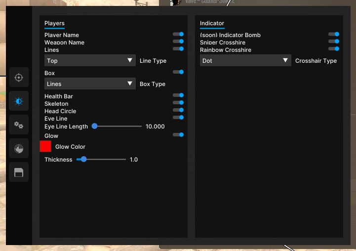 • Визуальные индикаторы: Отображайте имена и информацию об оружии врагов, настраивайте рамки и полосы здоровья.