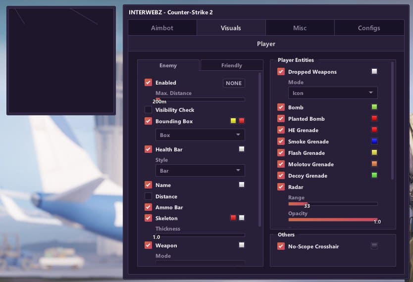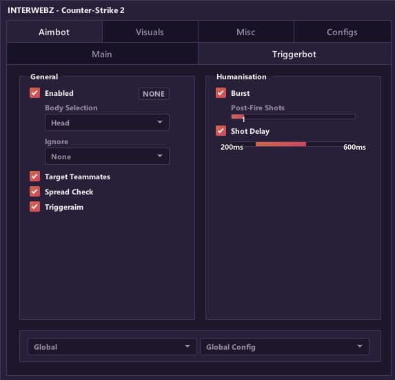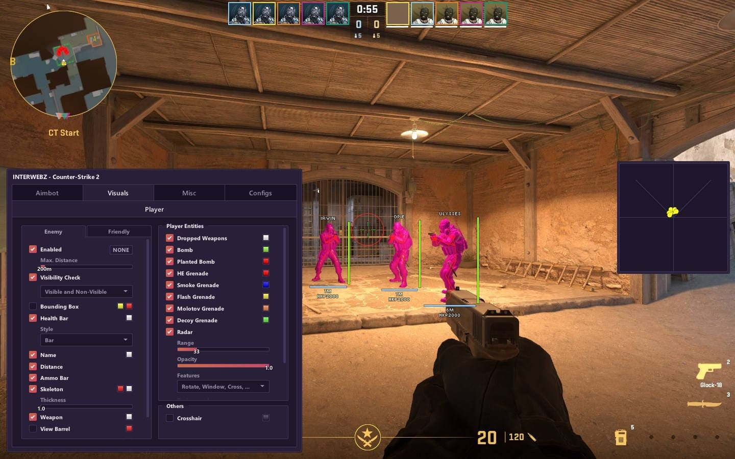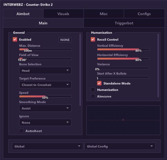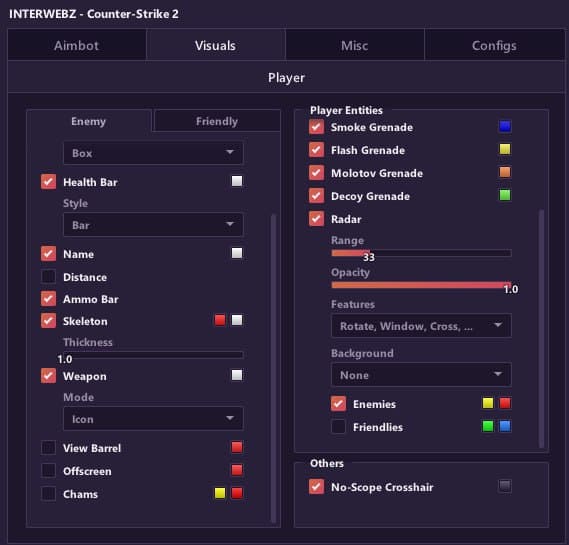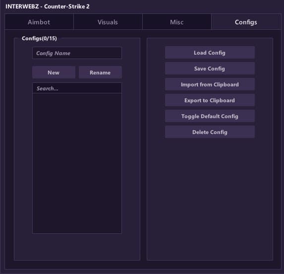 Mason InterWebz - это эксклюзивный приватный чит для Counter-Strike 2, обладающий рядом выдающихся функций. С visuals вы сможете получить лучший обзор игрового мира, aimbot обеспечит точность стрельбы, misc предложит дополнительные инструменты, а настраиваемые конфигурации позволят вам подстроиться под различные игровые сценарии. Mason InterWebz - ваш ключ к великому успеху в Counter-Strike 2