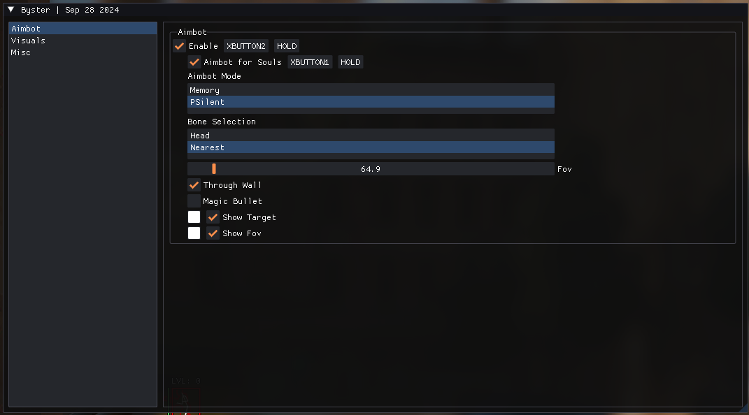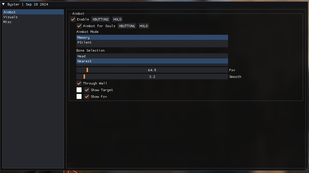 BYSTER - это приватный чит для Deadlock с функциями Aim,ESP, который поможет вам уверенно доминировать на поле боя. Улучшите свою точность стрельбы с помощью функции Aim и оставайтесь впереди благодаря ESP, обеспечивающему полный контроль над ситуацией.