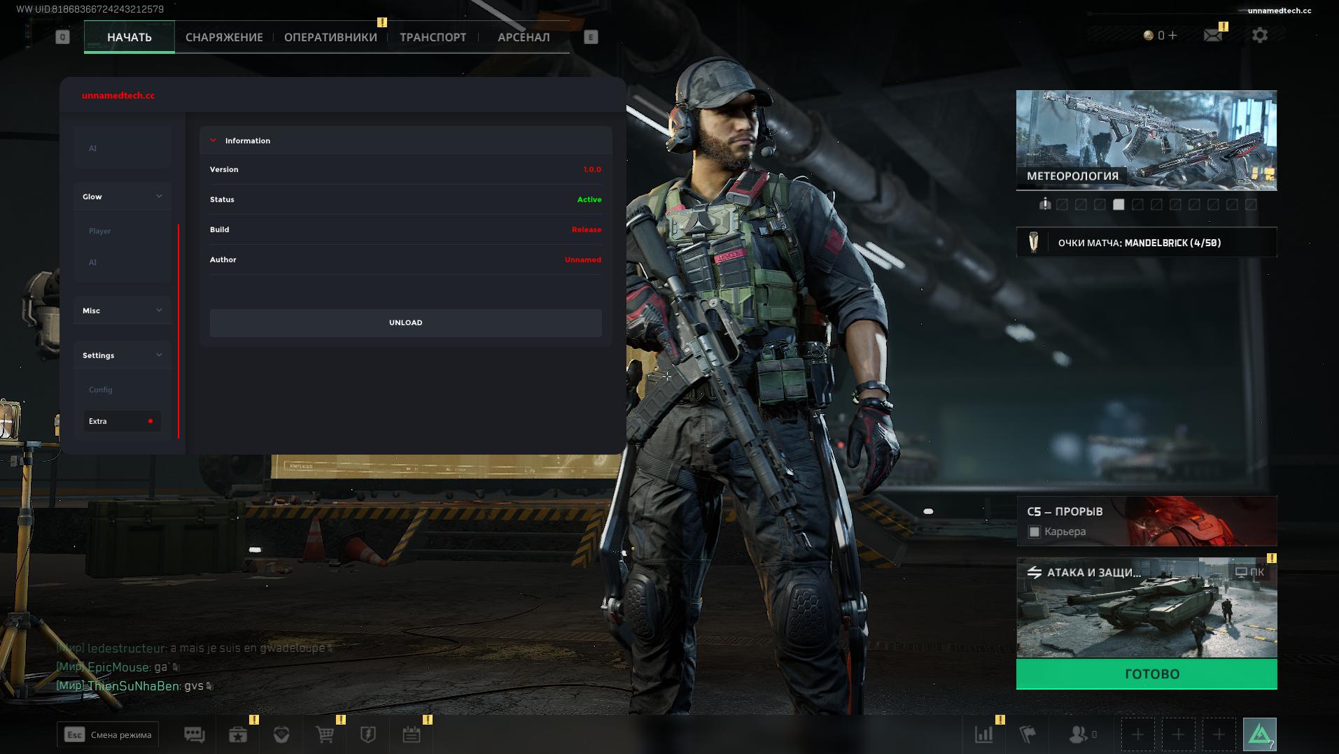 Unnamed Full - это приватный чит, разработанный для тех, кто хочет полностью раскрыть свой потенциал в Delta Force: Hawk Ops. Он предлагает максимально информативный ESP и расширенные возможности AIM, сочетая легитимность с дополнительным преимуществом. Если вам нужна полная власть над полем боя, это ваш выбор.