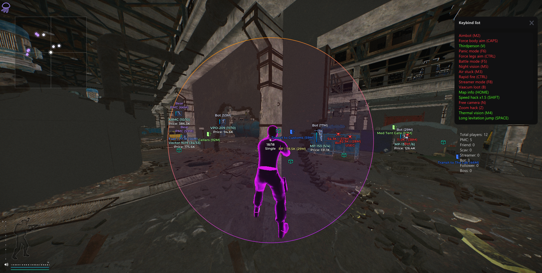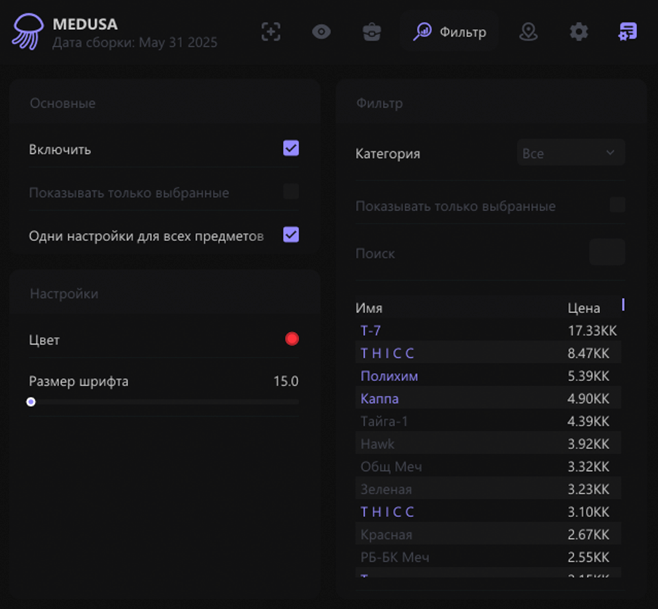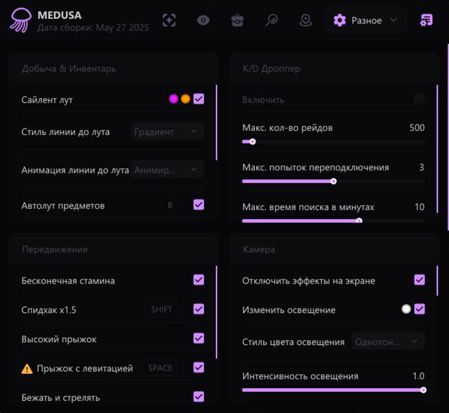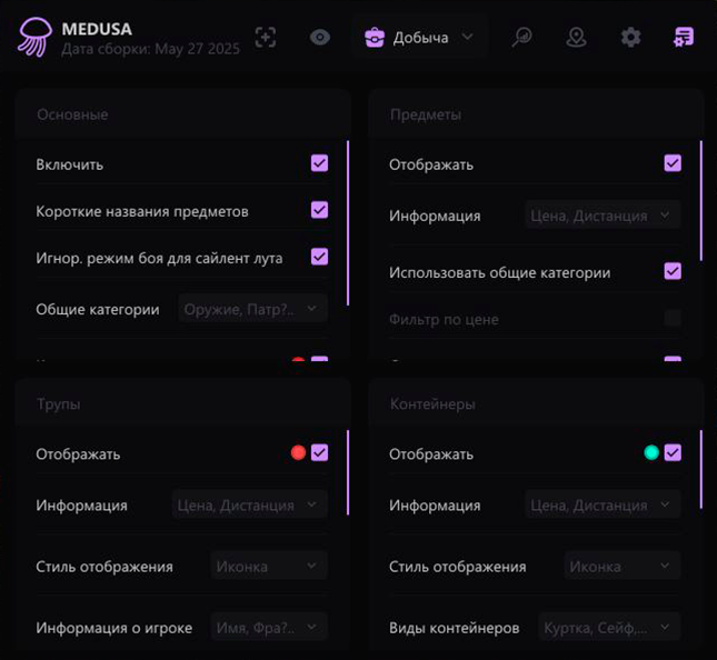 Medusa — это продвинутый чит для Escape from Tarkov, созданный для игроков, стремящихся к максимальному преимуществу и полному контролю над каждым рейдом. Благодаря мощному функционалу и интеллектуальным алгоритмам, Medusa обеспечивает высокий уровень безопасности, стабильности и уникальных игровых возможностей.