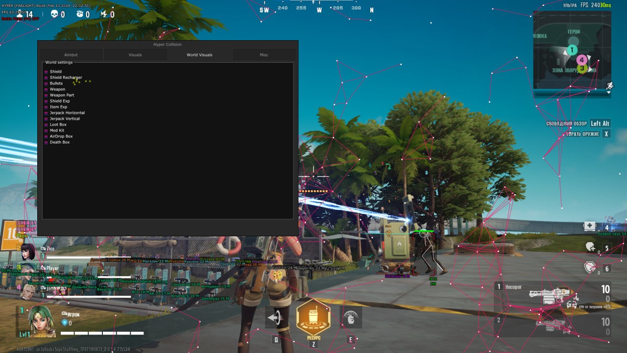 Hyper — приватный качественный чит, который разрабатывается для Farlight 84. В нем есть все необходимые функции для комфортной и продуктивной игры.