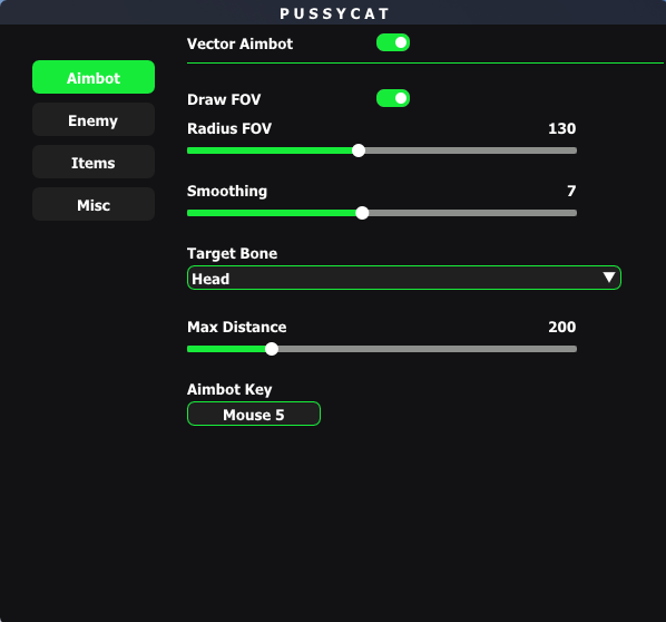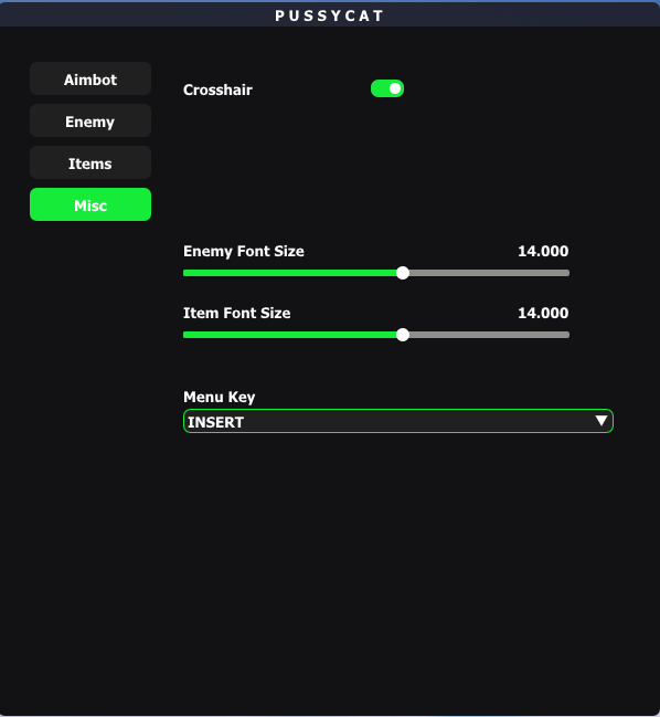 PussyCat - Приватный качественный чит для игры The Front. В чите есть все необходимые функции для быстрых побед в игре, такие как: AimBot, ESP и Misc.