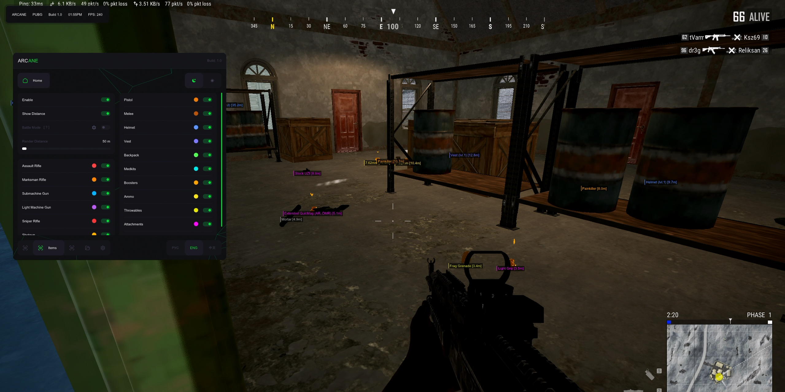 Arcane — приватный качественный чит, который разрабатывается для PUBG. В нем есть все необходимые функции для комфортной и продуктивной игры.