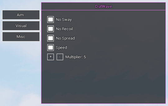 Dull — этот чит обеспечит вам превосходство над врагами, благодаря наводки и визуализации через стены, вы не оставите противникам и шанса вас убить.
