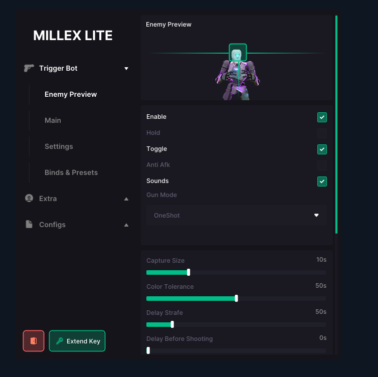 Каждая функция может быть настроена под твой уникальный стиль игры. Хочешь играть максимально легитно? Millex Lite позволяет тонко настроить все параметры, чтобы ты оставался незамеченным.