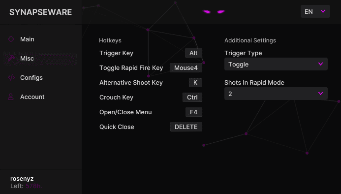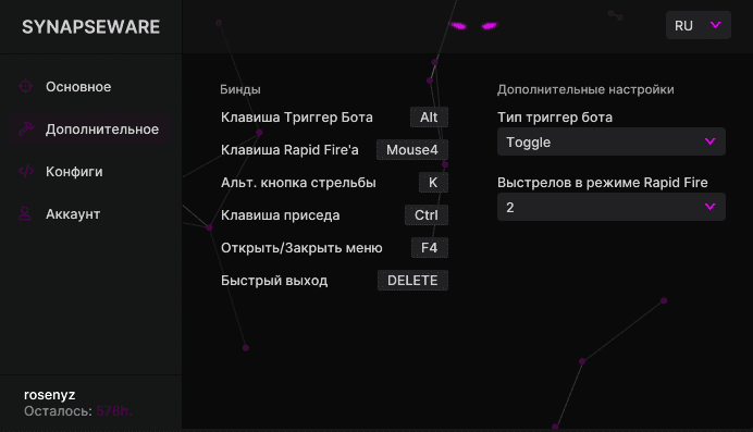 Synapseware Trigger представляет новый чит для Valorant! Этот инструмент обеспечит вам мгновенное преимущество, позволяя быстро реагировать на опасности и устранять врагов с непревзойденной эффективностью. Купите чит на Valorant от Synapseware Trigger и доминируйте в каждом раунде.