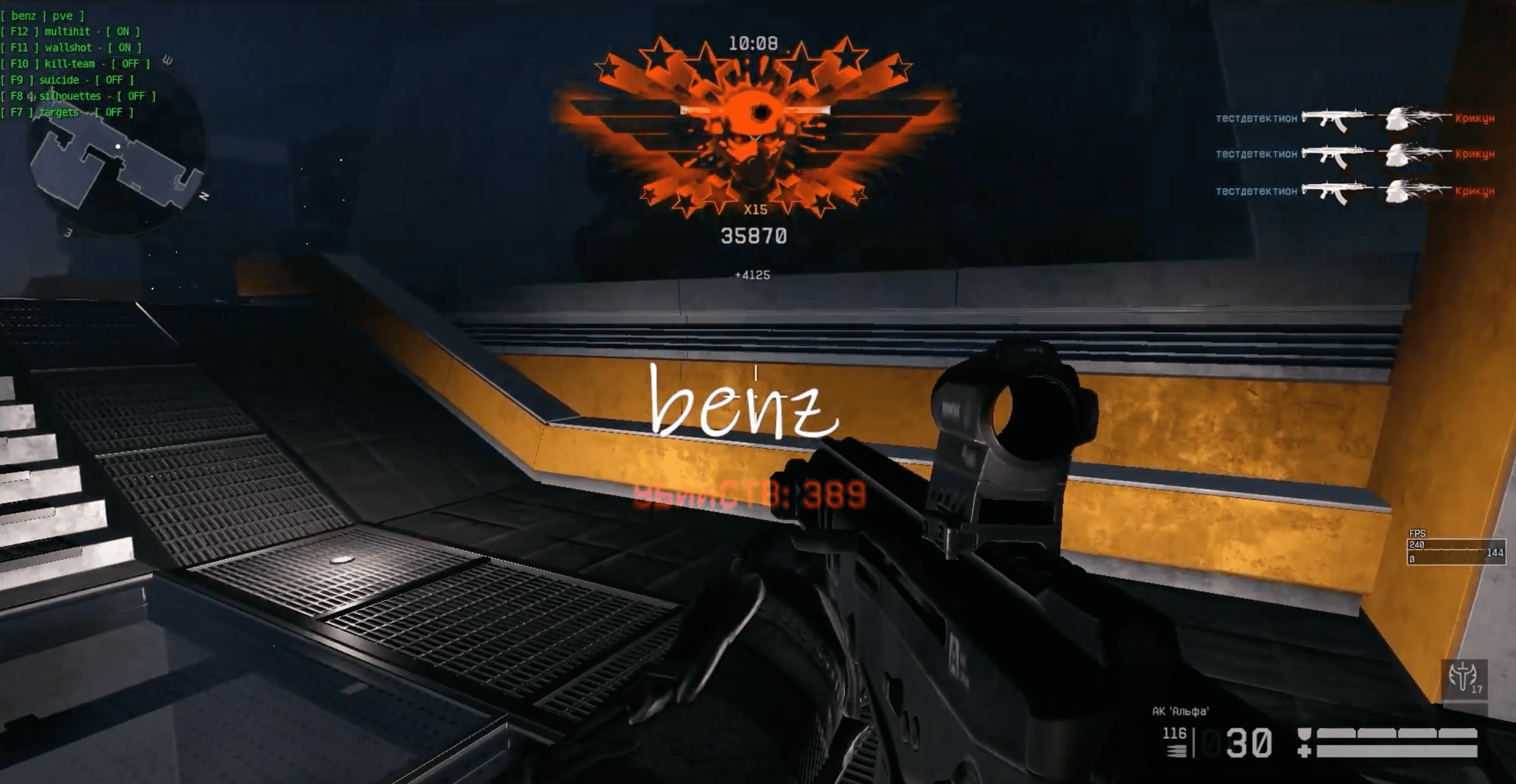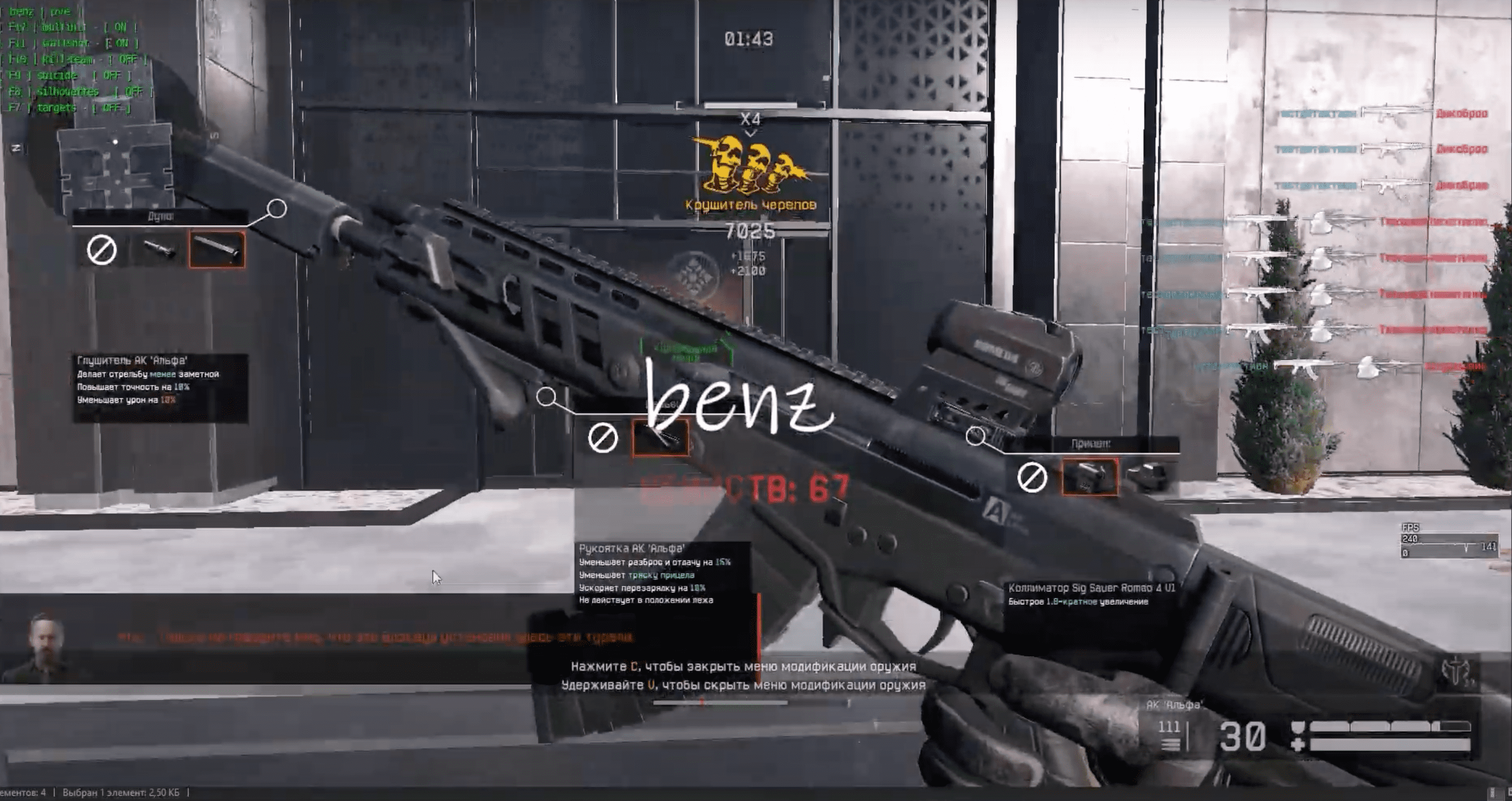 Чит Benz для игры Warface предоставляет игрокам уникальные возможности, делая их непобедимыми в PvE миссиях. Благодаря этому читу, персонаж становится более быстрым, сильным и можно сказать невидимым для противников. Benz позволяет легко преодолевать препятствия, обходить ловушки и атаковать врагов с максимальной эффективностью. С помощью этого чита игроки смогут легко завершать сложные миссии и достигать высоких результатов, не испытывая затруднений. С Benz ты не просто играешь, ты становишься легендой Warface